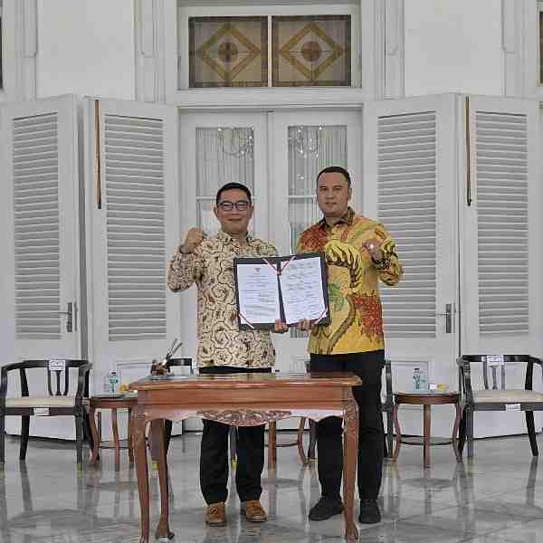 KOTA BANDUNG -- Pemerintah Daerah Provinsi Jawa Barat menghibahkan Sistem Merit Manajemen Kepegawaian Aparatur Sipil Negara kepada Pemerintah Daerah Kabupaten Sijunjung, Provinsi Sumatra Barat.Replika...
